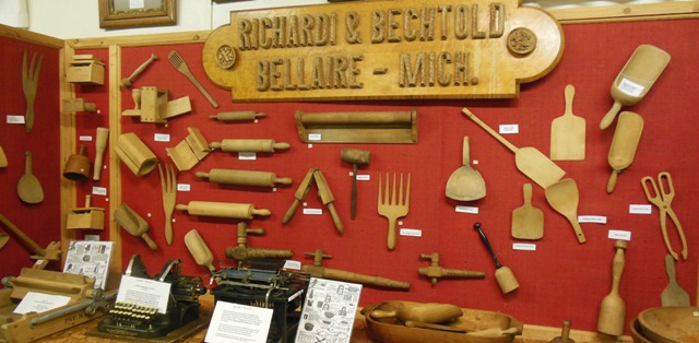Woodenware from the Richardi & Bechtold factory displayed at the Bellaire Historical Museum