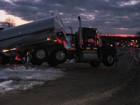 You think you had a bad day on Monday? You think your drive to work was lousy? Consider how it went for Chris Hubble. He had to call his dad and say “I slid into the ditch.” Ah, you are not sympathetic. Many of us slid into the ditch on Monday. Of course, most of us were not driving a milk hauler with 62,000 pounds of milk sloshing around in the trailer.