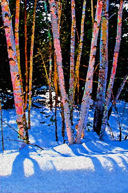 Ooh, that Babs – she’s got spring fever bad, that one. She’s been playing with the software, and POW! – all of a sudden it’s bright out there. Look at these birches. Holy Wah. And that’s not all . . .