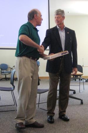 Bob Spencer thanks U.S. Rep. Bart Stupak for flag