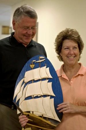 Sonny and Chris Szejbach with Commissioner Jerroll Drenth’s plaque