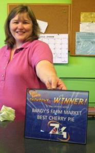 Sharon pulled the Best Cherry Pie award off the wall so I could get a picture of it, helped me choose a thank you card for my sister, showed another customer where to find a raspberry pie, and made it all look easy, which it’s not.