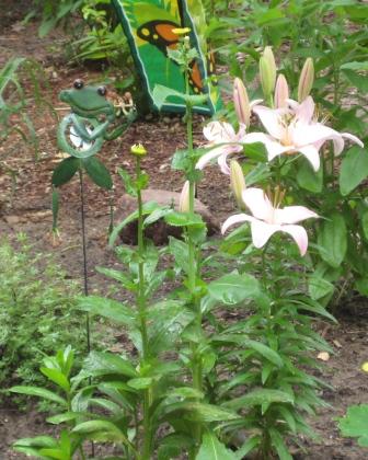 It dawned on me that Karen’s garden is a form of meditation. There she finds the beauty that Mama Nature makes, the riot of new life that pushes up out of the earth each spring, the challenges of the spiders, the deer, the inexplicable wilt. She finds the humor in the garden frogs – the plaster ones, the metal ones, and the ones that hop away when she brings out the hose. She finds a connection to something far more powerful than the loveliness of the flowers and the scent of damp earth. Somewhere there, watering the garden, she finds peace.