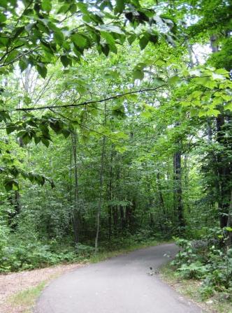 Accessible trail curves into the woods