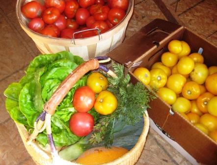 Are those yellow tomatoes? Do you know their name? I finally have red ones from our own garden, and it’s funny how easily they slip down past a smug smile.