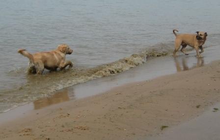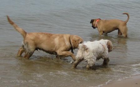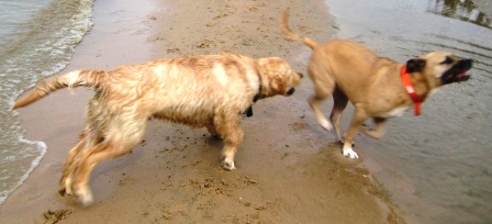 Mick Ambler and Rogie were down on the beach the other day, and the bouncy Golden Retriever “puppy” had a great time with Miss Sadie and the Cowboy. They hunted for minnows.