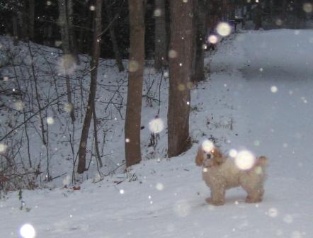Then of course it snowed. A fair amount, actually. So here’s the Cowboy out for a little walk, looking for all the world like a poodle.