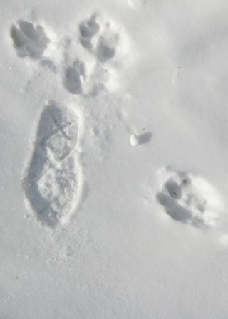 We could see they were tracks, but they were inverted. Instead of making indentations, they rose above the snow like carved rosettes. Very close up they looked like Spritz Cookies, or—if you’re less hungry—like the pawprints of the gray fox. Or maybe just Miss Sadie. I could go either way.