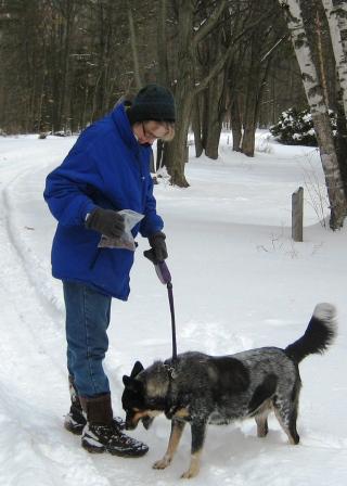 A week or so ago I went over to Barnes Park to interview Eileen Wallick and Ranger Teddy for a piece for the Antrim Review. While I was there, Katherine Berst came by to introduce her new Australian cattle dog, Maya, to Ranger Teddy. The introduction went well, and the interview continued during a walk around the campground.