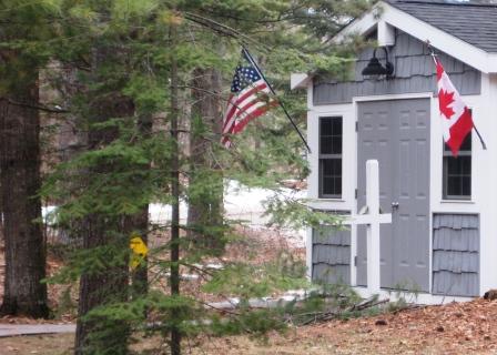 We have an International Freedom Festival on the Detroit River every July. Our pockets jingle with each other’s pennies and quarters. We don’t even notice until we try to use one of those quarters in a vending machine. We think snowy winters, tall pines and Florida vacations are the norm. We like each other. Inevitably, we intermarry–although nobody notices. Half the people we know have some sort of Canadian connection. And why is all this on my mind? Because I always enjoy the cheerful sight of the Fritzes’ toolshed when I walk past there with Miss Sadie and the Cowboy.