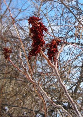 Sumac. This patch is pretty ragged, but there it was, on the riverbank at Richardi Park in Bellaire.