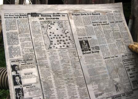 As for why the plates were in the barn, John came along and explained it all for us. He happened to be in Central Lake when the Torch was throwing out old plates, and he picked them up because, well, sheets of anodized aluminumm could come in handy. He sided his fish shanty with some and stowed the rest in the barn because, well, you never know. “That old fish shanty is back in the woods someplace,” he said. “It might make interesting reading.”