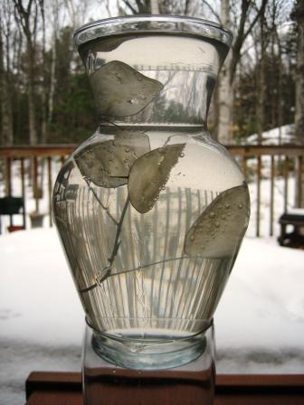 Lunaria is called money plant because the seed pods look like coins. Here are some I was being arty with back in February. Maybe it’s not such a good idea to drown your money plant “coins.”
