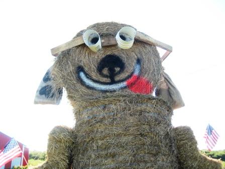 Yesterday I went by again, and sure enough, there was the dog. I’m sorry I wasn’t there to take pictures of the construction process, but you can imagine the scene. I’ve named him Hay Dawg and I think he’s a worthy challenger to the Dawsons’ Pumpkisaurus Giganticus. What’s a resort area without whimsy?