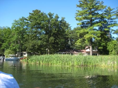 I’ve paddled Torch Lake and the upper bit of the river but this was my first look at the stretch below the bayou. I was struck by the development. Torch River is as settled and manicured as any suburb, except that every house has a highly individual—even eccentric—character, and there’s a boat parked in front. (OK, docked, but I’m taken with the suburb comparison. Bear with me.) Phragmites doesn’t stand a chance through there.
