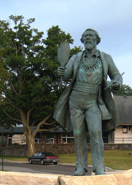 Heading back to my car, I stopped to study the statue of Ignatius Petoskey gazing westward over Lake Michigan. He’s an imposing figure, in his moccasins and business suit, with his bearclaw necklace. I’d like to be able to sit down with him for a good talk, too. The son of a French fur trapper and an Odawa mother, he lived in a time when Jesuits and Presbyterians competed for influence in this region, and both were set on “civilizing the natives.” Petoskey, for whom the city is named, stood with one foot in Odawa culture and the other planted firmly in the burgeoning European/American society of the frontier. He was by all accounts a successful man, prosperous and widely admired, who had adapted well to the new facts on the ground, as it were. But his great-great-grandson Warren Petoskey has written about his family’s travails in assimilation-bent Indian boarding schools, and their struggles with alcoholism and rage. We do the best we can. Maybe it’s a good thing we don’t know how it all works out, the unintended consequences. It’s hard enough to cope with the past.