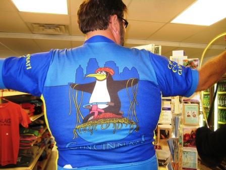 Then John stood up and I saw the penguin logo on his shirt. OK, another story. Each year on the first Sunday in May the Cincinnati Cycle Club sponsors a ride called the Chili Century. Chili as in chilly, which they think it is in Cincinnati in early May, on account of they have never been to northern Michigan in early May.