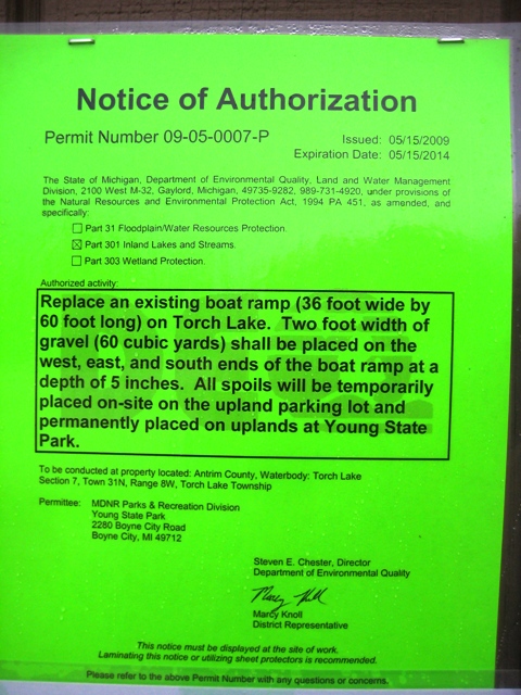 - Torch Lake boat launch update: DNR Construction Crew at Eastport Landing