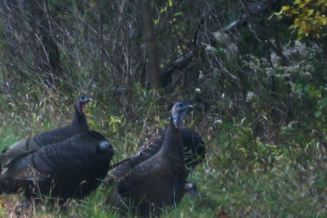 Farther down the road, wild turkeys foraged near Birch Lake. Usually they flow into the underbrush before I can dig out the camera, but today they seemed to be in no hurry. Perhaps they, too, have an extra hour.