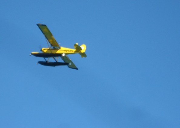 I think it would probably be cool to fly a plane, but I’m not motivated to learn how. I’m an ignoramus when it comes to astronomy or engineering or any of the technology required to launch these enterprises. I’ll tell you what, though. I’m an expert at the flights of fancy that lead people to think it might make sense to turn an airplane into a giant telescope. So now I’m wondering what a guy like Daugherty Johnson, Eastport’s snow sculptor of wolves and sled dogs, architect of treeehouses, could do with a little smaller Flying Machine, maybe something like this yellow seaplane.