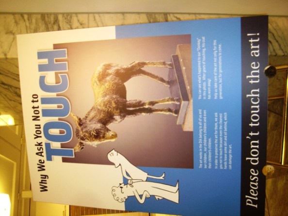 And besides – as the poster says, the donkey was originally bumpy and dark brown, and now it’s shiny wherever people have touched it. Surely, that is a good thing? 😉