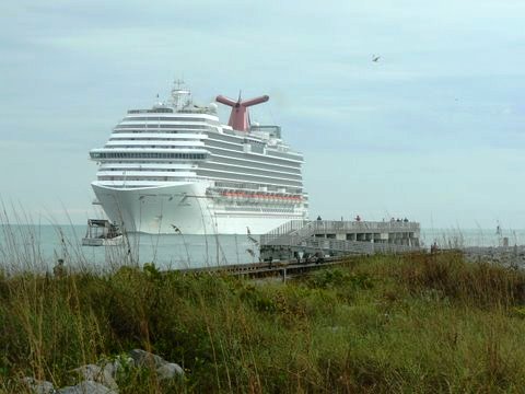 Chris and Sonny Szejbach have been lounging on the beach in Florida. Yesterday Chris wrote: I understand it is snowing at home. We had a storm last nite and the rocket launch was postponed to tonite. Hope to get pictures. We see these cruise ships come into port daily, thought I’d share.