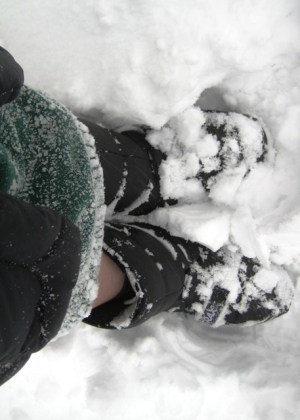 I should have been wearing my snowpants, but I was still in my flannel nightgown, which is too short.  I had snow down my neck, snow in my pockets, snow all over my camera, and snow in my too-short black booties.