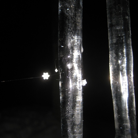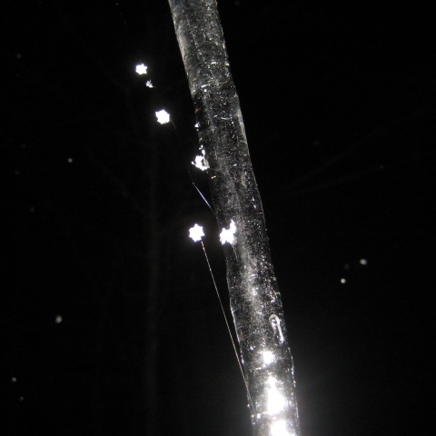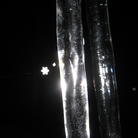Snowflakes were caught in spider filaments.  I had never seen anything like this before.  I was enchanted.