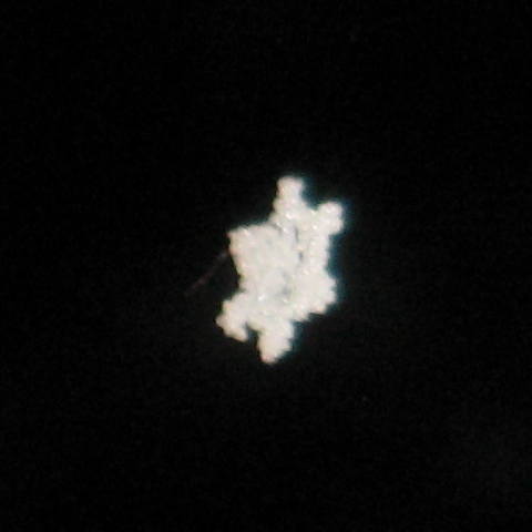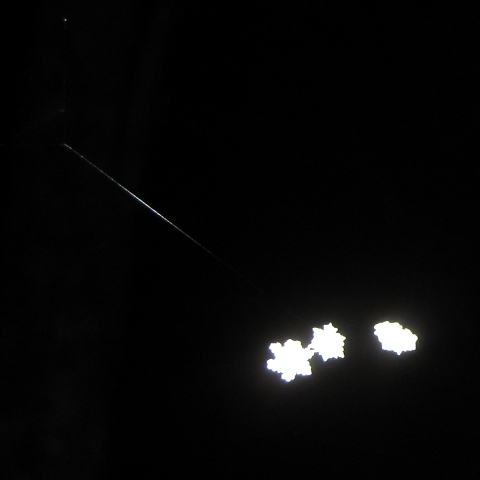 I know this last one looks like a plastic ornament from the dimestore, but it truly is a little ice crystal snowflake dangling from a spider web outside the Writing Studio and Bait Shop on a dark December night.