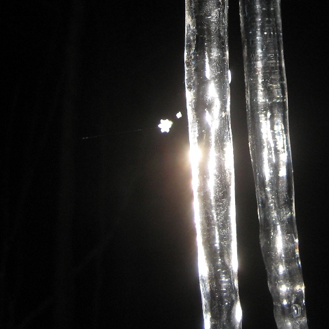 Last night I took the dogs out at bedtime.  The wind had hushed.  Icicles glittered from the eaves.  But there was something else . . .