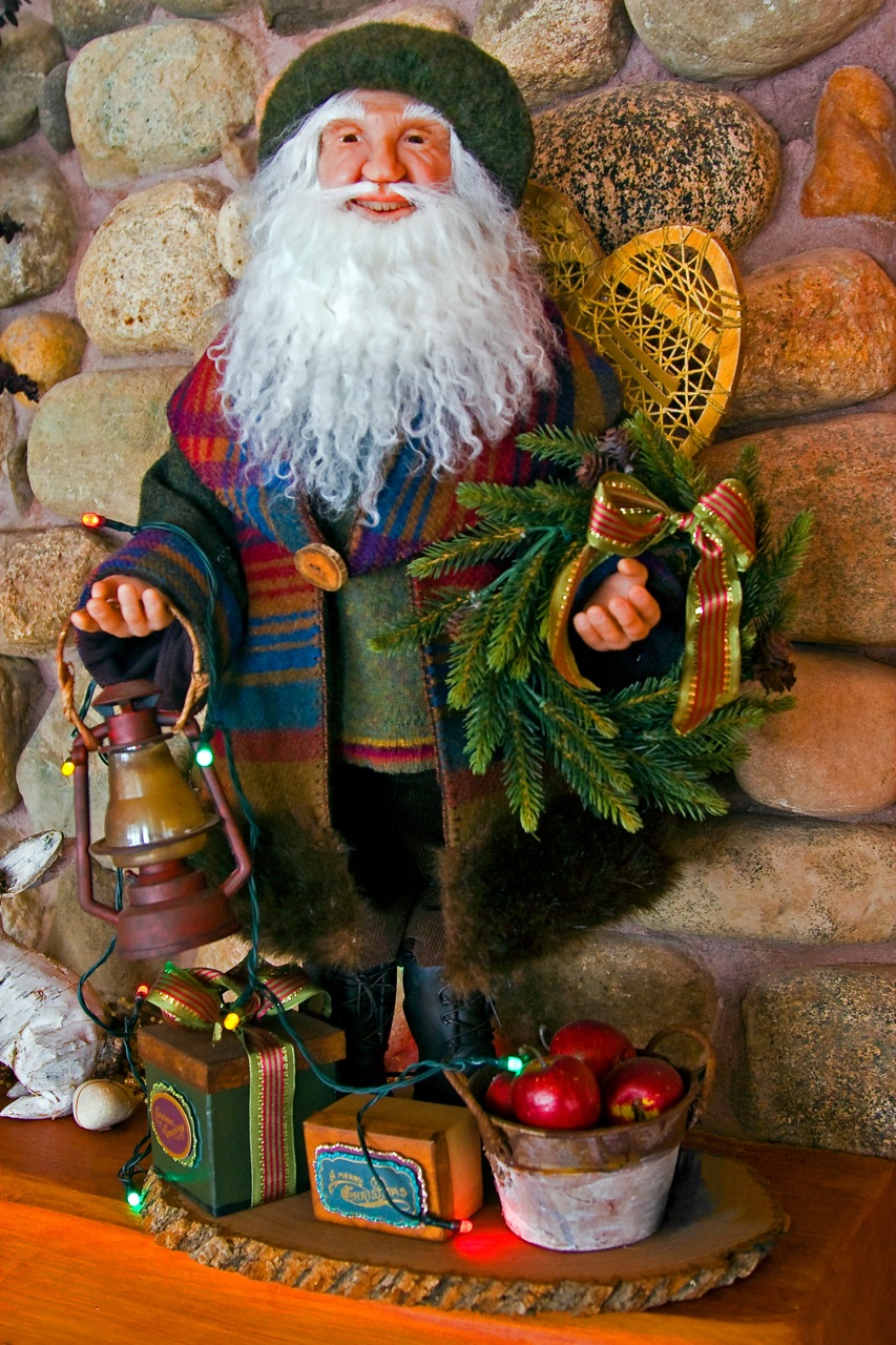 I will not be getting any holiday cards out for this holiday season, so this will have to serve as my wish for a very Happy New Year to each of you. This wonderful Santa or Old Man Winter was created by my friend Joanne Robben who summers up here and spends the rest of the year in Peachtree City, Georgia. This old guy won second place at a doll making conference in Canada last year. He is pretty special and has a nice home on our mantle year around.