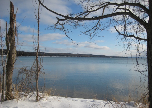 We parked at the DNR access at the north end of Torch Lake and walked down to the shore. No ice as far as we could see . . . which is miles and miles from this spot.