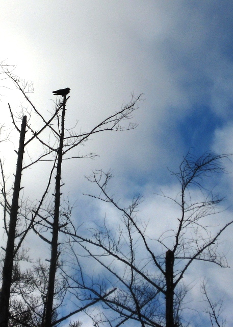 At the tops of the trees the crows station themselves, self-appointed sentinels of the neighborhood. This one called that blue right into the sky. Crows can be very persuasive.