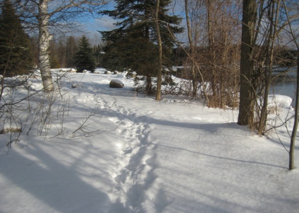 The sun shone on the snow in the little wooded patch next to the boat ramp. Nice, bright sun, too. You’d think it might melt the snow, but you’d be wrong, because it was still very cold out there.