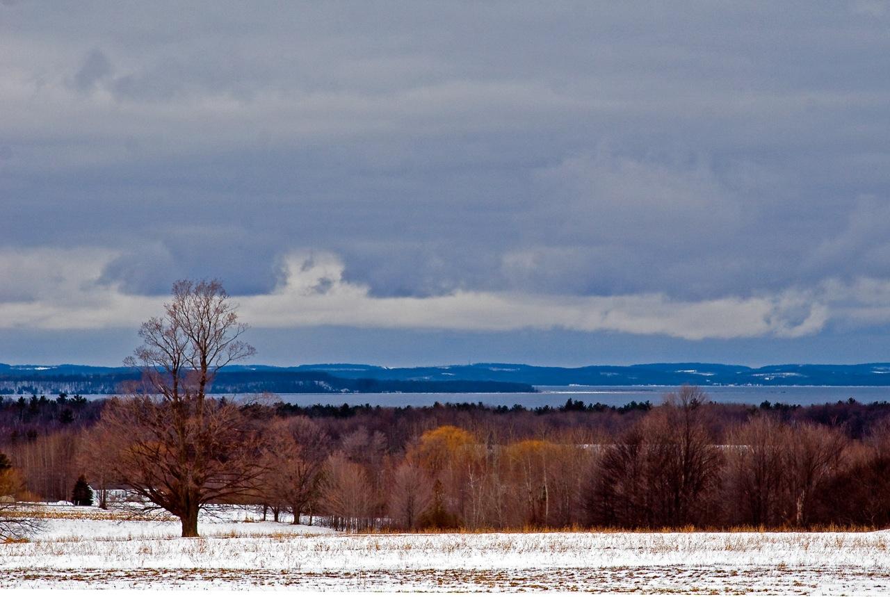 Babs has been perched on a ridge contemplating the long view. She writes, Not too much sunshine here lately, but interesting skies and the trees are full of color. This was taken from Cairn Highway looking at the end of the Old Mission Peninsula.
