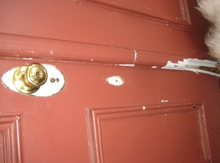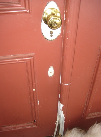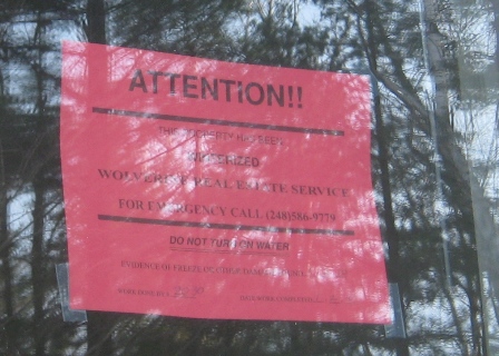 A house in my neighborhood has been foreclosed, the family evicted, and the property secured by a company acting on behalf of the bank. I use the word “secured” loosely, as a fair amount of damage was done to the front door in the process of entering and changing the locks and so forth.