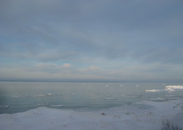 The Bay was quite beautiful this morning. Very peaceful. Cold, too—icy cold. The propane furnace keeps kicking on tonight, making the sound of ten dollar bills going up in smoke. The cat dozes next to my keyboard, the Cowboy leans against my feet, Miss Sadie is stretched out in the chair she favors. We lead a simple life. So far, so good.
