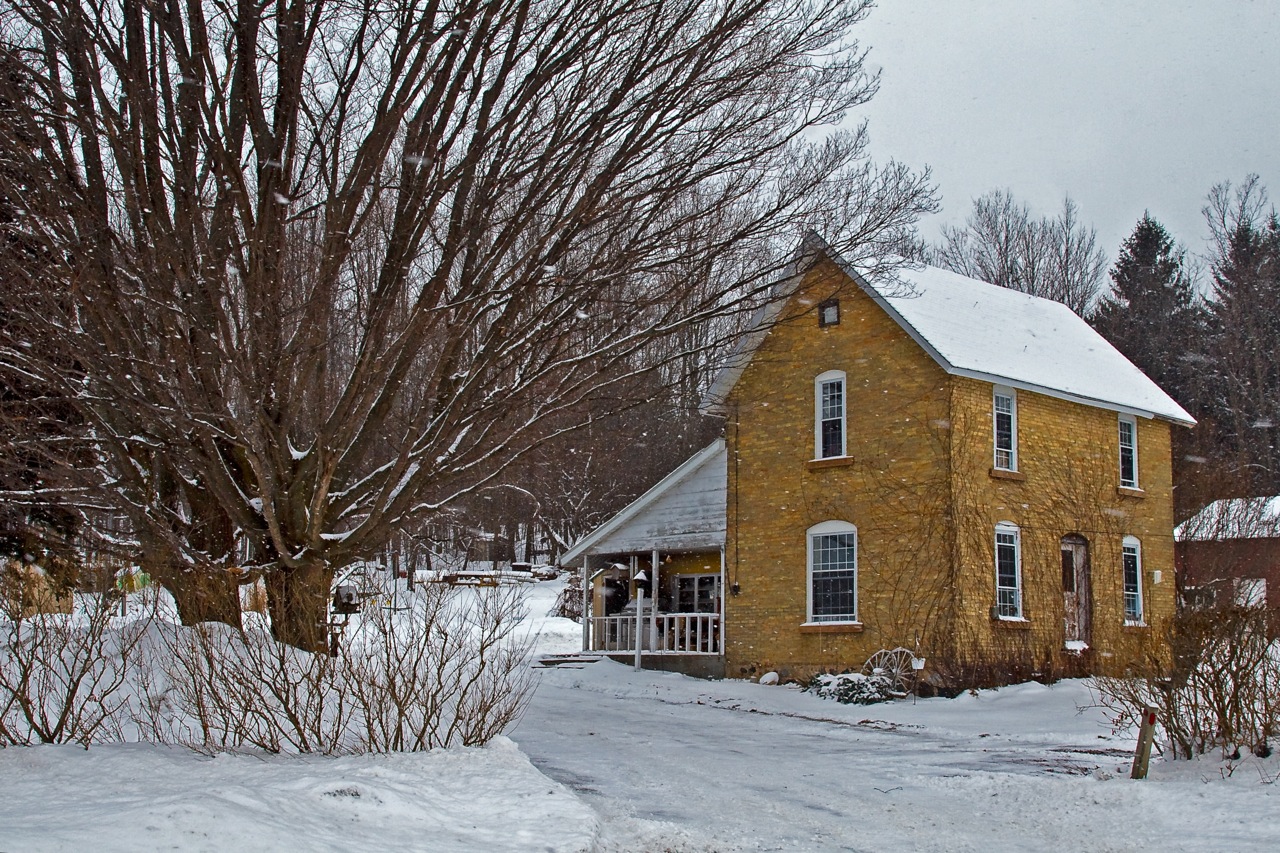 Sunday night I opened my weekly email from Babs Young. She wrote: This elegant simple yellow brick home is on the way to Central Lake on M88. The snow sets it off very nicely.
