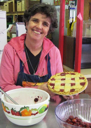 By the time I managed to get over there, the crowds were gone, but “crowds” Up North in February are measured in ones and twos, not thousands, and there was plenty of pie left, along with delicious tastings of Balaton and Montmorency cherries. There was also Betsy, who pretty much brightens up the day no matter what’s up.