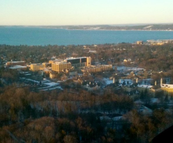 I am writing from my very nice room in Munson Hospital. My residence for the last week. The adventure started on the ski trails in Barnes Park. We had skied about 4 miles on trials that were so fast that I had barely worked up a sweat. Suddenly I could not suck in enough air to keep me going. Fortunately, the route to our place was mostly downhill, but when I got there, it was clear that a 911 call was needed. The Torch Lake Township ambulance has 4 wheel drive and it was able to negotiate our snowy and hilly driveway. I got to hear the siren blare as I was taken to Torchport Airport to meet a helicopter. I had my iPhone with me and it was a bright sunny evening; so I was able to record the trip.