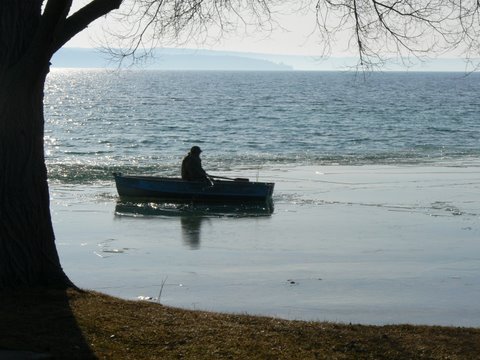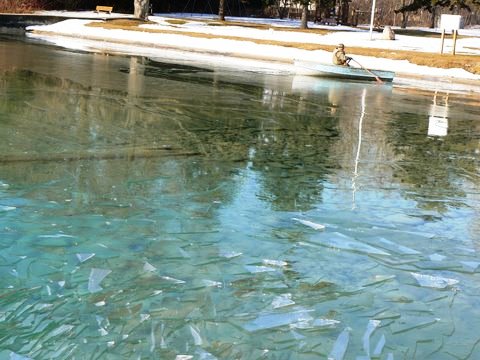 Last evening I went down to the Day Park myself, and found that all the ice was gone. The fisherman was gone, too. It must have been a lot easier to get out of the lake than it was to get in it. I hope he caught lots of fish. I hope he enjoyed the sunshine.