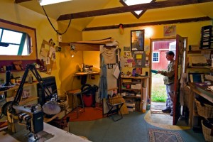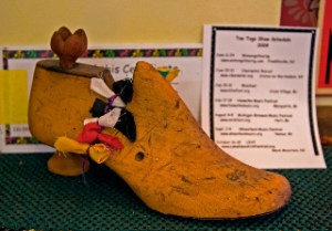 Sue Swain works in a tiny shoemaking studio in Central Lake Township, tap-tapping away on custom made sandals and boots. All summer she travels to art fairs and festivals; all winter she works on the orders. Some of her customers need special orthotics. Others are looking for an unusual design, or for the freedom to choose their own colors and fittings. Still others simply want something handmade with care. They find it at ToeTogs.