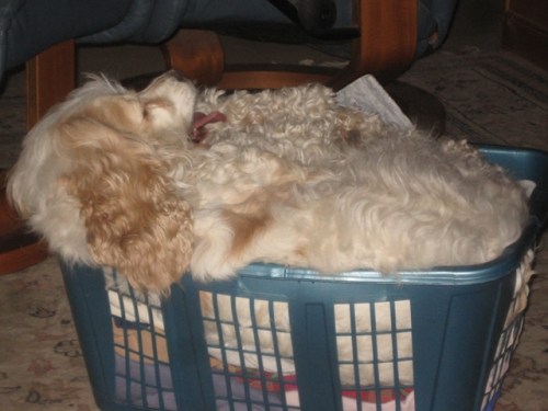 Just after midnight last night I put up the last post and headed for bed. On the way I discovered that the Cowboy had found a new place to nap.