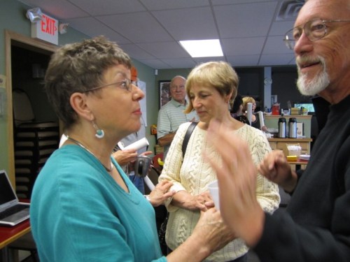 Donna took a lot of photos, and they were better than mine. On the other hand, I took photos with Donna in them, so it all balances out. Here she is talking to Sylvia and Jim Walworth. No, Jim is not saying “No Press, please!” Jim is talking with his hands. It kind of looks like Donna is making a point, doesn’t it?
