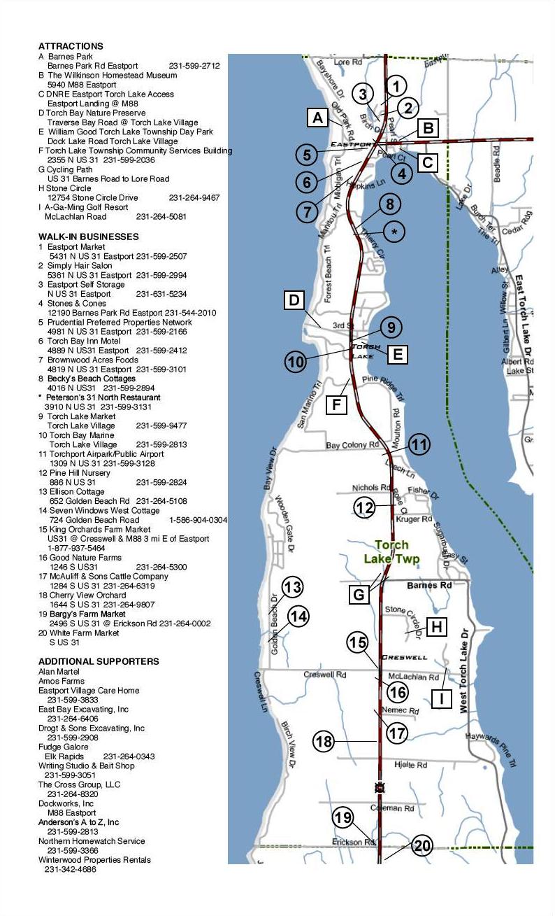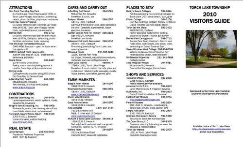 The Torch Lake Township Economic Development Partnership (otherwise known as the Business Bunch) has published a new and improved version of our Visitors Guide. There are lots of business listings and a nice crop of Attractions, too. There is a nice big map! I don’t see how you can go wrong.