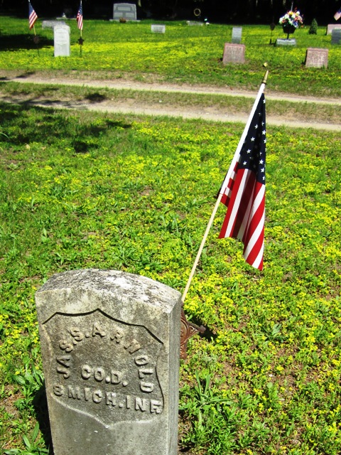 James S. Arnold, Co. D, 8th Michigan Infantry, Civil War. William J. Cobb, Spanish American War. Edward C. Ackerman, U.S. Army, World War I. Charles A. Sweet, Army Air Corps, World War II. (He and Jessie were married a week after Pearl Harbor.) Victor Cole, Coast Guard, Korea. John E. Kimball, Air Force, Vietnam . . .