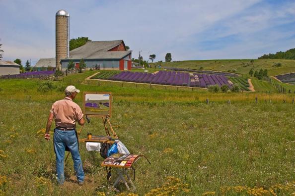 Babs writes: I made a trip over to Lavender Hill Farm near Boyne City today. It is pretty spectacular. They are about to harvest the crop and the rows that are green have been harvested. However before that all happens I was very fortunate to find plein air artist Bill Hosner doing a pastel of the farm. He is from Traverse and his work is very well known. He was waiting for the light to change some to capture exactly what he wanted.