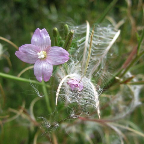 There are so many tiny plants growing on the beach that a person could make a whole botanical career studying just those. I’m not going to do that–I already have too many obsessions–but this particular tiny plant caught my eye. At first I thought seed fluff from other plants had blown into its stems, or maybe it was duckdown, or Cowboy fur. Everything else is covered with Cowboy fur. But no, the fluff is emerging from the tiny plant itself.