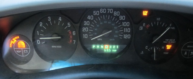 The low tire is a function of the other problem which has to do with the sensing devices that govern the braking and traction which are messed up because there is something wrong with the undercarriage of this car that three different mechanics have not been able to resolve satisfactorily. When all those lights come on at once I become morose. I can still brake for suicidal deer, but I no longer want to.