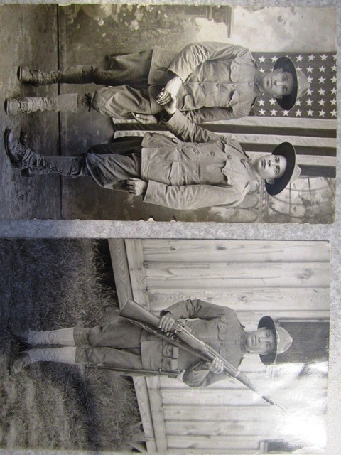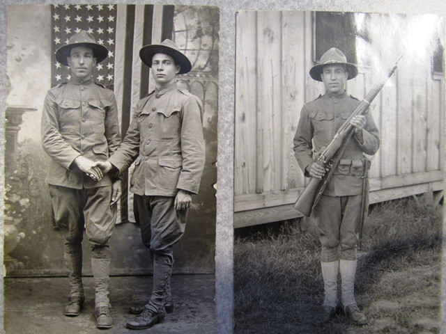 I thought you’d like to see these photos from Jackie’s collection. (Keep in mind that I was taking pictures of pictures. The photos people brought were better than they look here.) Sherry says she rarely sees really good photos of Doughboys–World War I soldiers. Jackie had two. Clearly these guys were posing for the photographer, making postcards to send to the relatives, proud of serving their new country. Knowing what you know about the war they were headed into, you hope they came out of it OK.